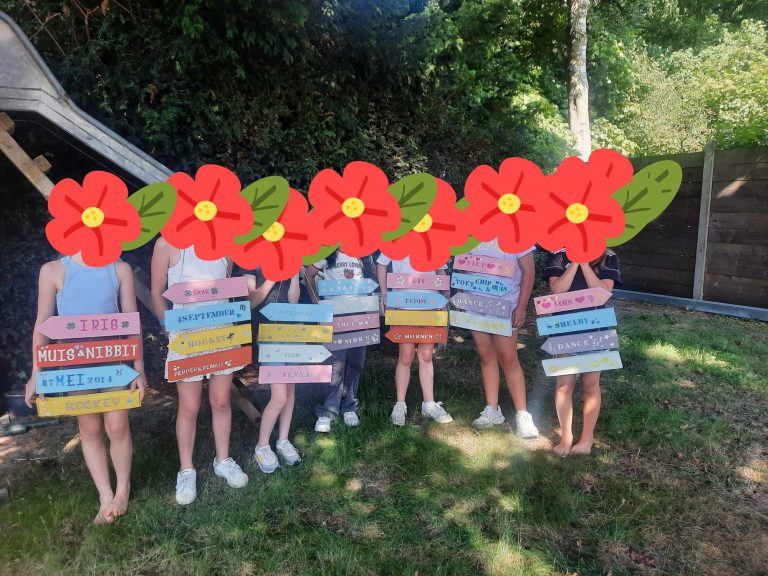 Wij geven ook leuke, creatieve kinderfeestjes. Bijvoorbeeld een mooi tekstbord maken voor op hun slaapkamer. Het tekstbord bestaat uit 4 sloophout bordjes/pijlen. Deze gaan ze schilderen, en naar eigen idee sjabloneren.